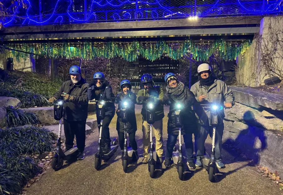 Enjoy a romantic ride with our Date Night Bundle electric scooter rental, featuring a two-scooter package, scenic route suggestions, complimentary dessert options, and LED lights for a magical evening adventure!